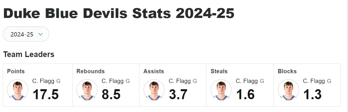 他的全面,也体现在目前的场均数据上。ESPN的统计显示,弗拉格场均17.5分8.5篮板3.7助攻1.6抢断1.3盖帽,五项数据全部排名杜克队内第一。